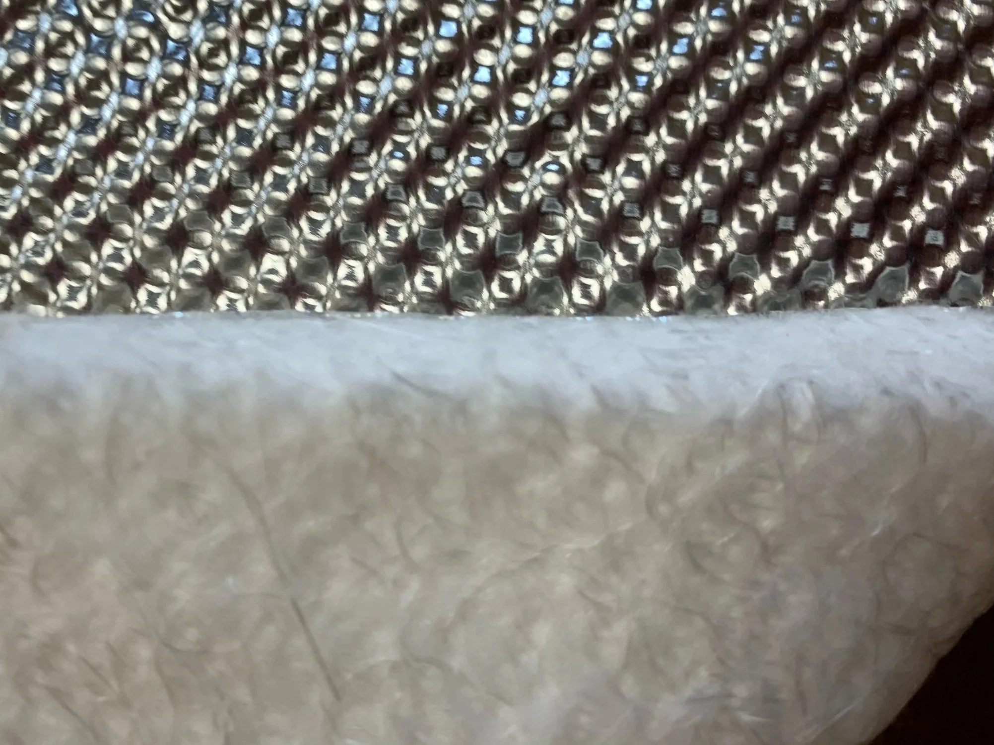 The texturized aluminum coating on one side will reflect heat up to 1200°F, is waterproof and will hold its shape on most any application.